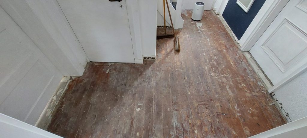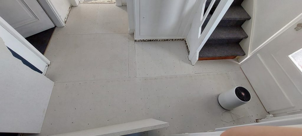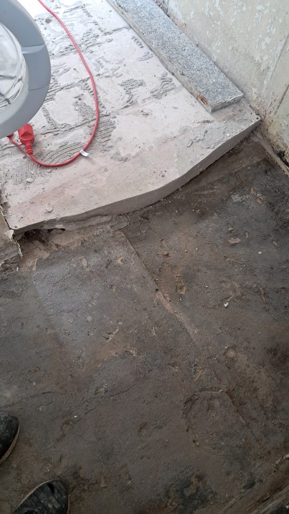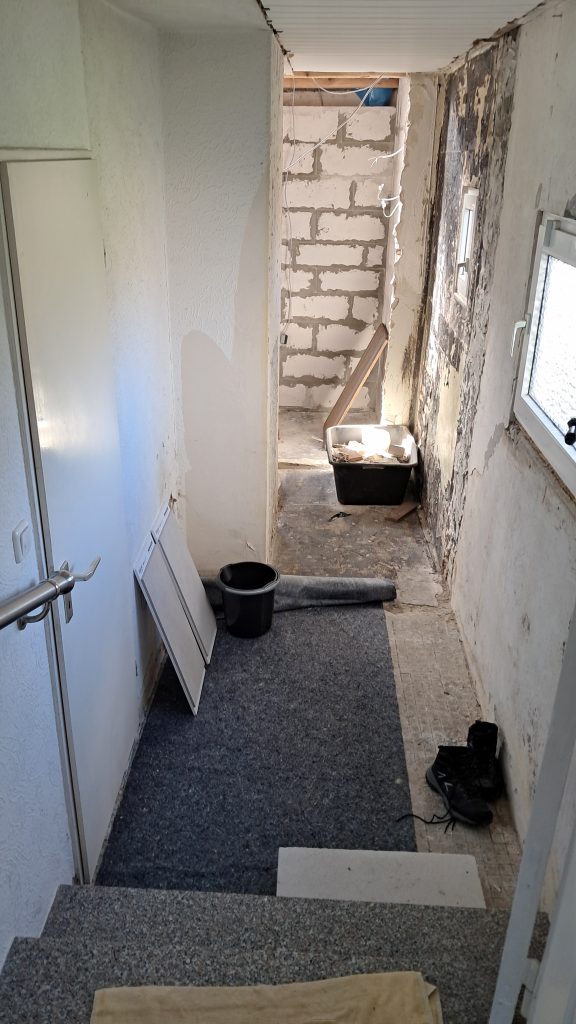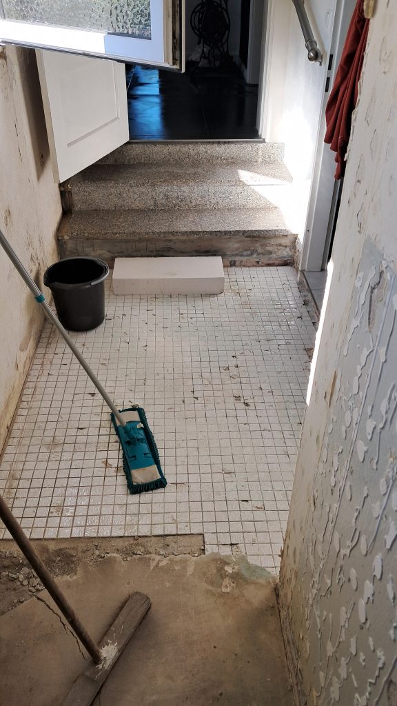 Flur zum Anbau 1 – Drei Fliesenschichten kamen zum VorscheinFlur zum Anbau 2Flur zum Anbau 3Flur zum Anbau 4Flur zum Anbau 5Der Durchbruch